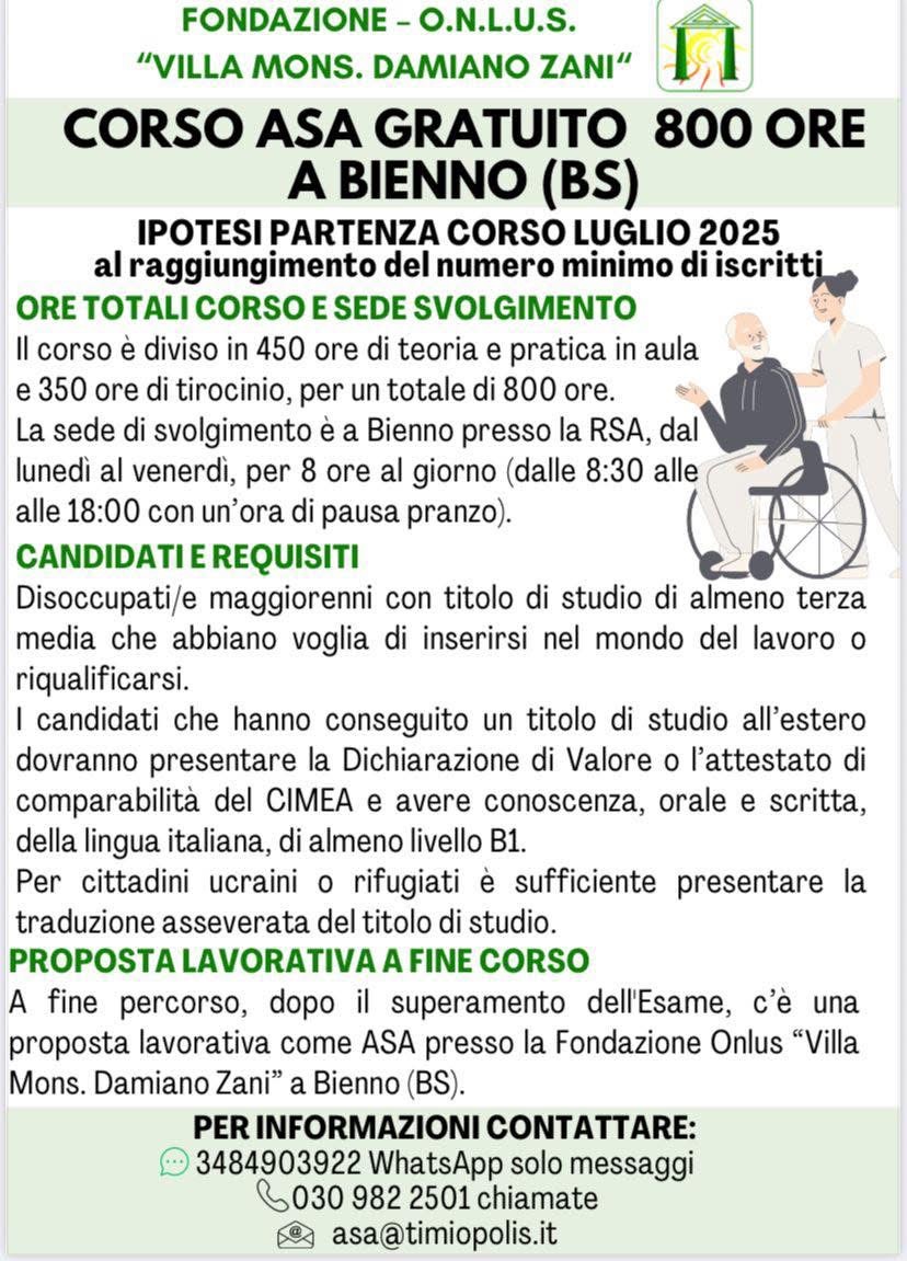 Corso ASA offerto da Fondazione O.n.l.u.s. Villa Mons. Damiano Zani